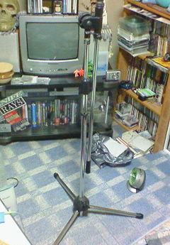 ちなみに先程、酒屋兼コンビニでオバちゃんからもらったマイクスタンド。
